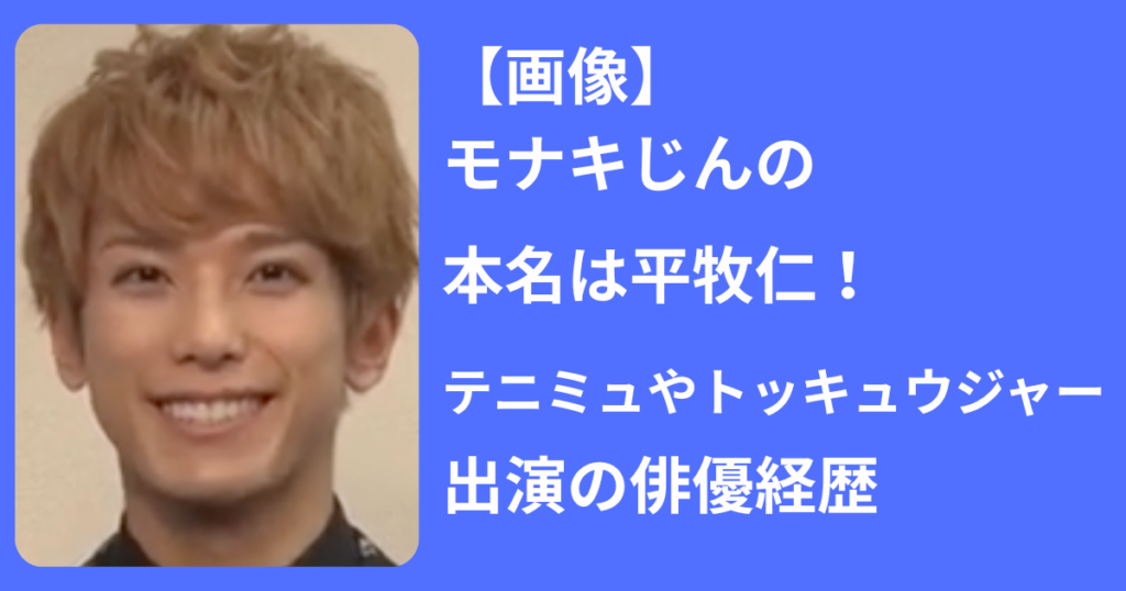 【画像】モナキじんの本名は平牧仁!テニミュやトッキュウジャー出演の俳優経歴
