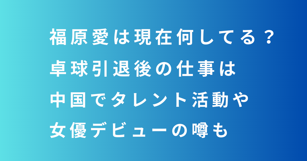 「福原愛ちゃん、最近テレビで見かけないけど今どうしてるんだろう?」