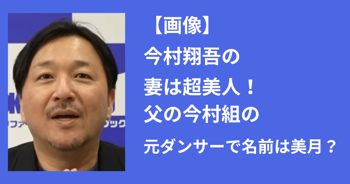 【顔画像】今村翔吾の嫁は誰?父の今村組の元ダンサーで名前は美月?